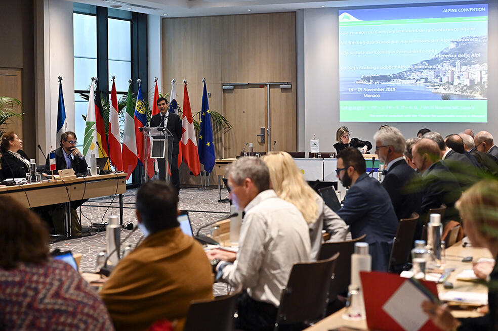 Cyril Gomez, Directeur Général du Département de l’Equipement, de l’Environnement et de l’Urbanisme, a ouvert la 68ème réunion du Comité Permanent de la Convention Alpine.