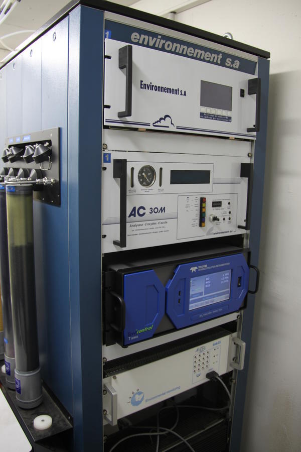 Les polluants de l’air tels que les oxydes d’azote, le dioxyde de soufre, le monoxyde de carbone, les poussières et l’ozone (O3) sont mesurés en continu